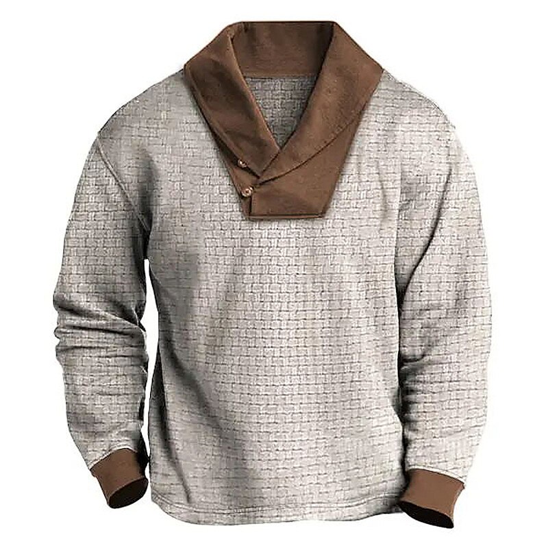 Men's Waffle Polo Shirt Polo Shirt Casual Sports Lapel Long Sleeve Vintage Basic Color Block Patchwork Spring & Fall Regular Fit Blue Khaki Beige Gray Waffle Polo Shirt