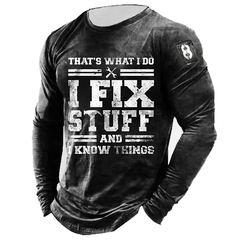 Men's T shirt Funny T Shirts Slogan T Shirts Letter Graphic Prints Crew Neck Print Outdoor Street Long Sleeve Print Sports Casual Top