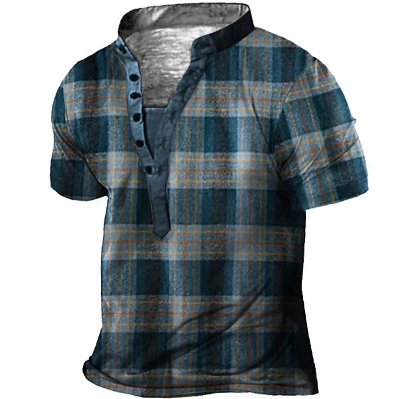 Men's T shirt Henley Shirt Vintage Outdoor Daily Short Sleeve Button-Down Basic Classic Casual Top