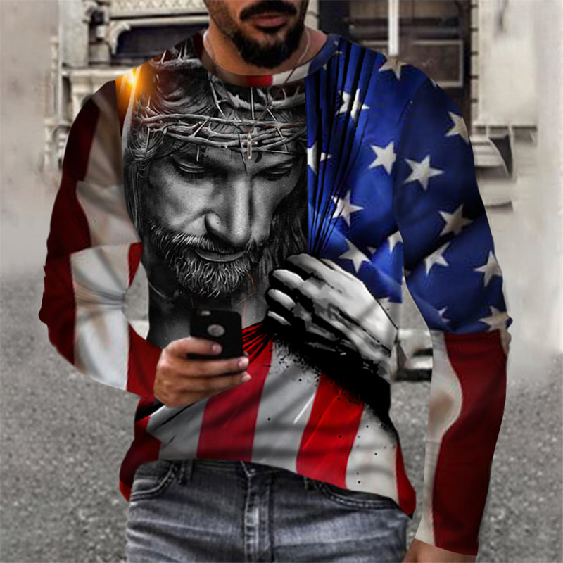 Men's T shirt Graphic Prints Crack Crew Neck 3D Print Holiday Long Sleeve Print Top