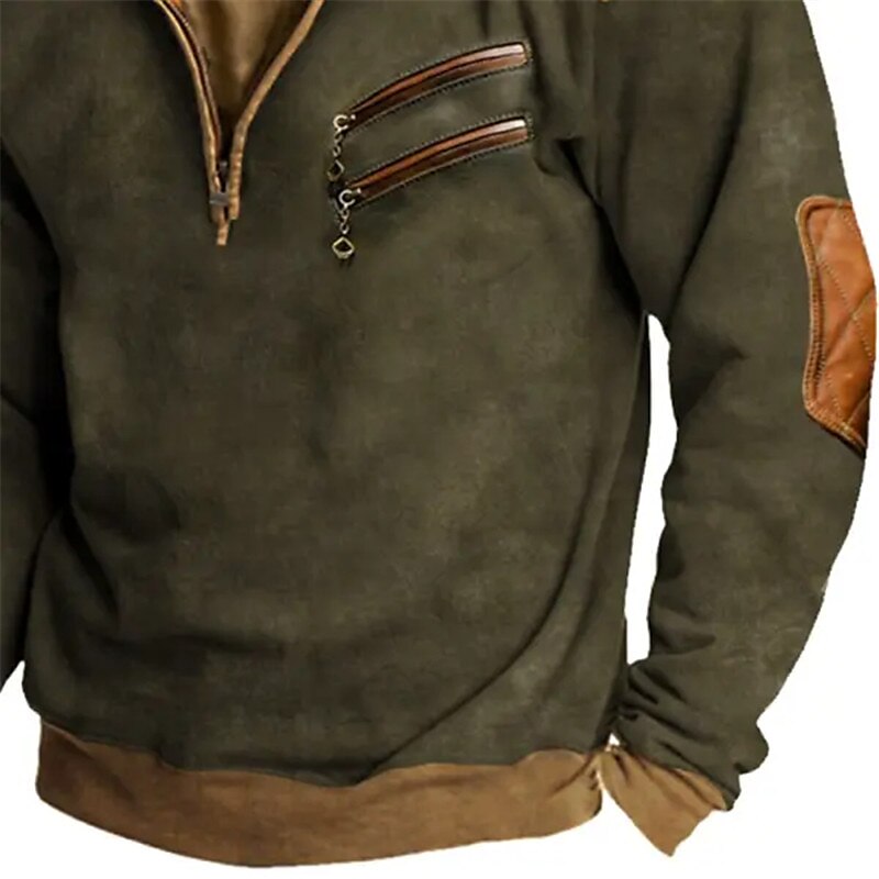 Men's Sweatshirt Quarter Zip Sweatshirt Army Green Standing Collar Color Block Patchwork Sports & Outdoor Daily Holiday Streetwear Basic Casual Fall & Winter Clothing Apparel Hoodies Sweatshirts