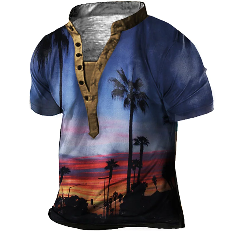 Men's Henley 3D Print Graphic Patterned Short Sleeve Tops