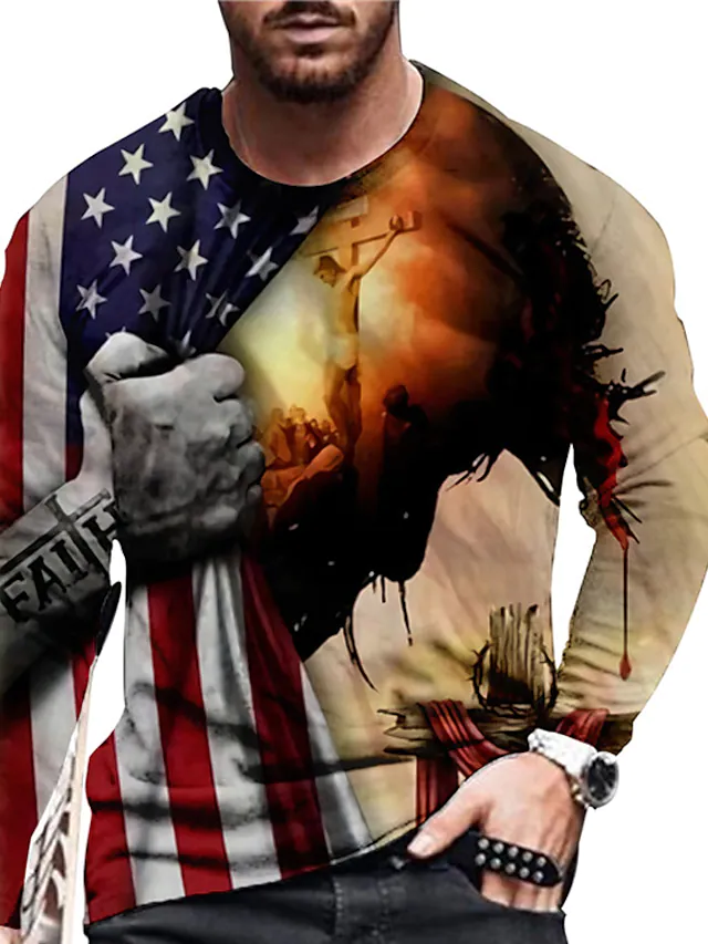 Men's T shirt Graphic Prints National Flag Crew Neck Hot Stamping Street Vacation Long Sleeve Top