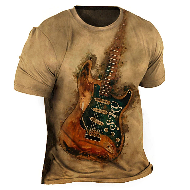 Men's T shirt Graphic Color Block Guitar Musical Instrument Crew Neck 3D Print Outdoor Casual Short Sleeve Vintage Top