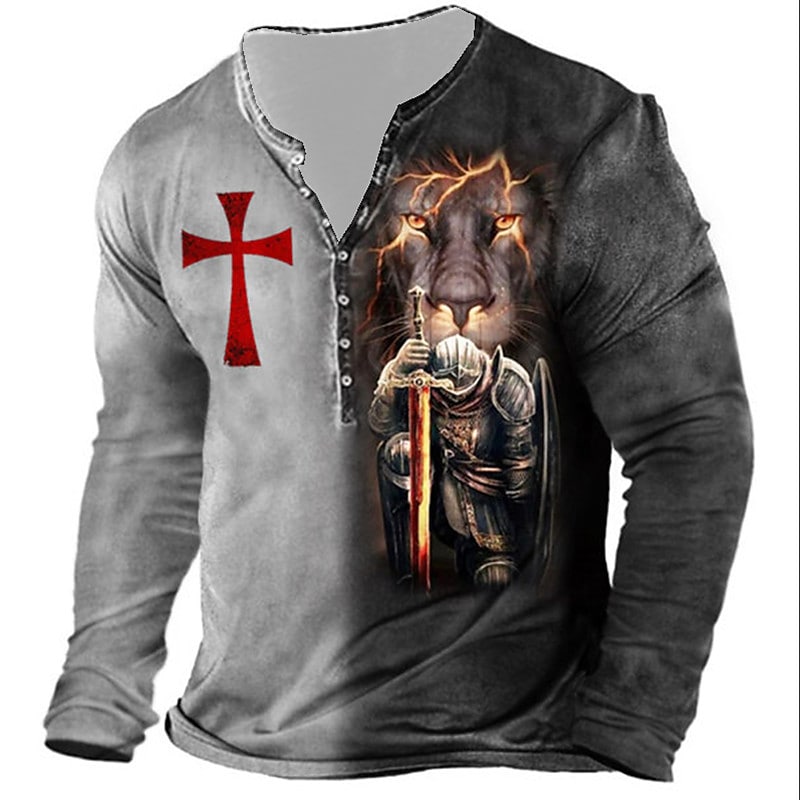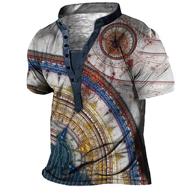 Men's 3D Print Henley T-shirt