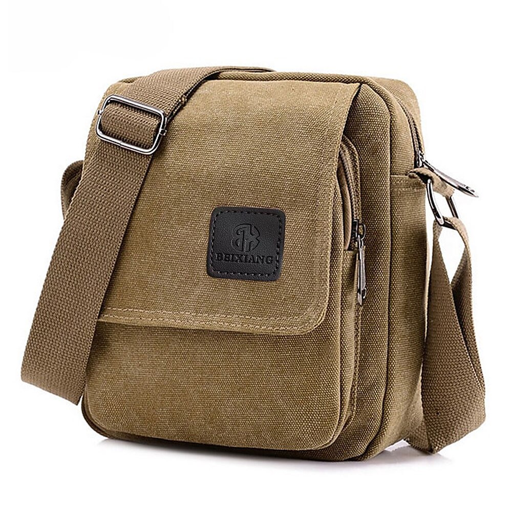 Men's Crossbody Bag Messenger Bag Canvas Outdoor Daily Lightweight Durable Solid Color Black Army Green Khaki