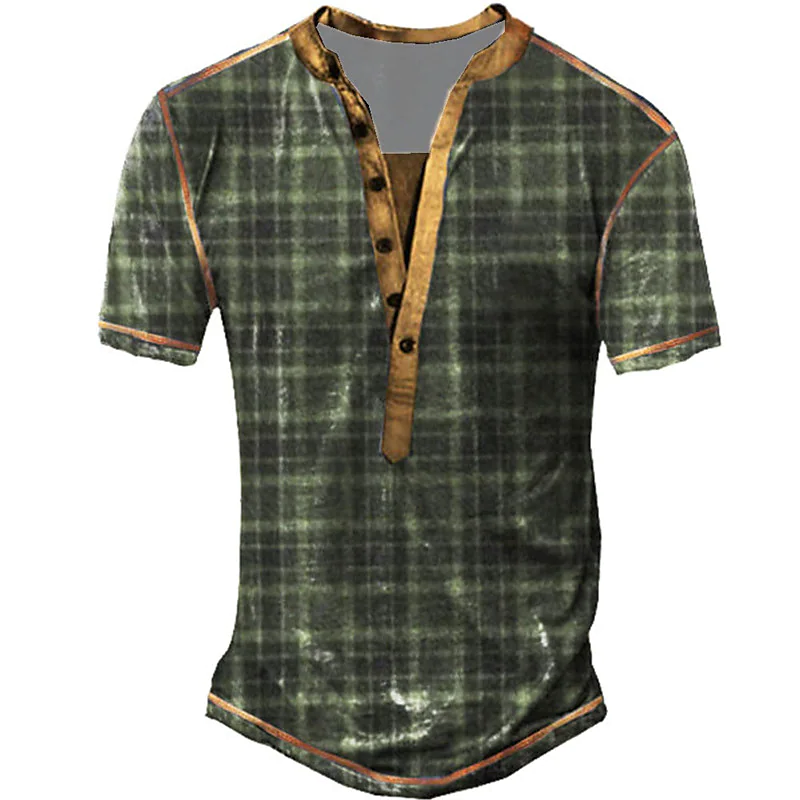 Men's Waffle Henley Shirt Graphic Plaid / Check Henley Print Outdoor Daily Short Sleeve Button Fashion Top