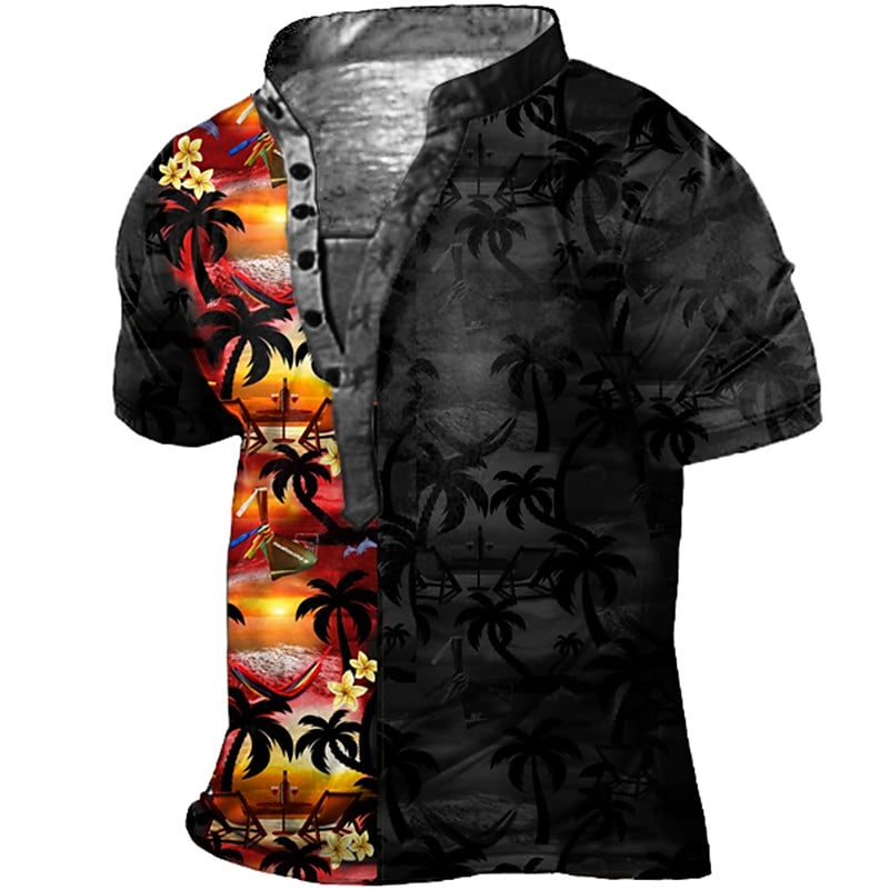 Men's 3D Print Henley T-shirt