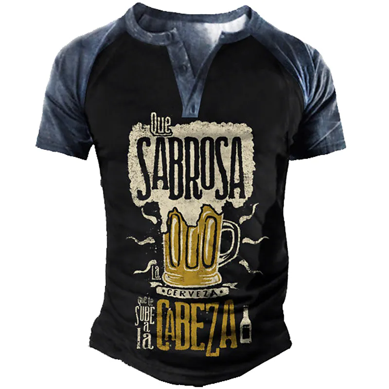 Men's 3D Print Henley T-shirt