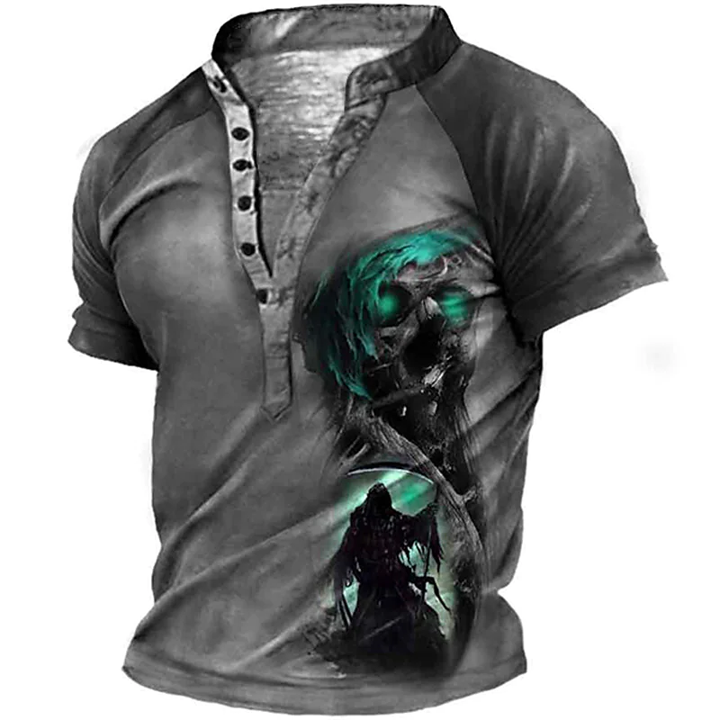 Men's Collar Polo Shirt Soldier Turndown Print Outdoor Street Short Sleeves Zipper Fashion Casual Breathable Golf Shirt