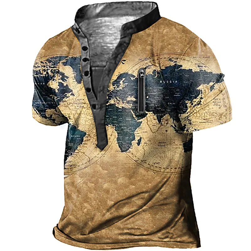 Men's Outdoor Golf Street Fashion Casual Breathable Comfortable Light Waffle Print Short Sleeve Henley Shirt