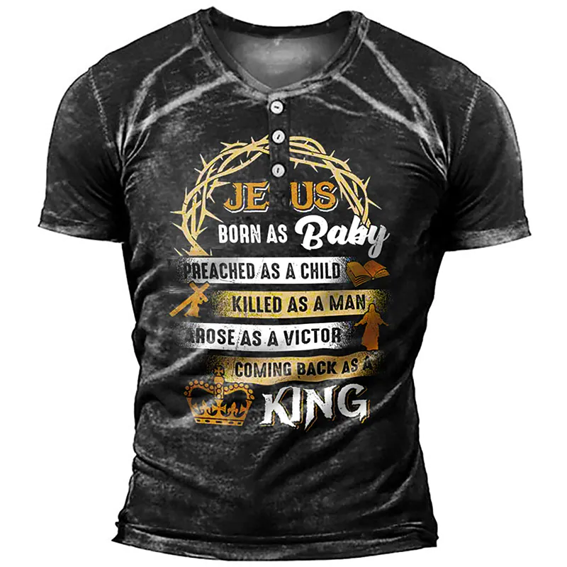 Men's 3D Print Henley T-shirt