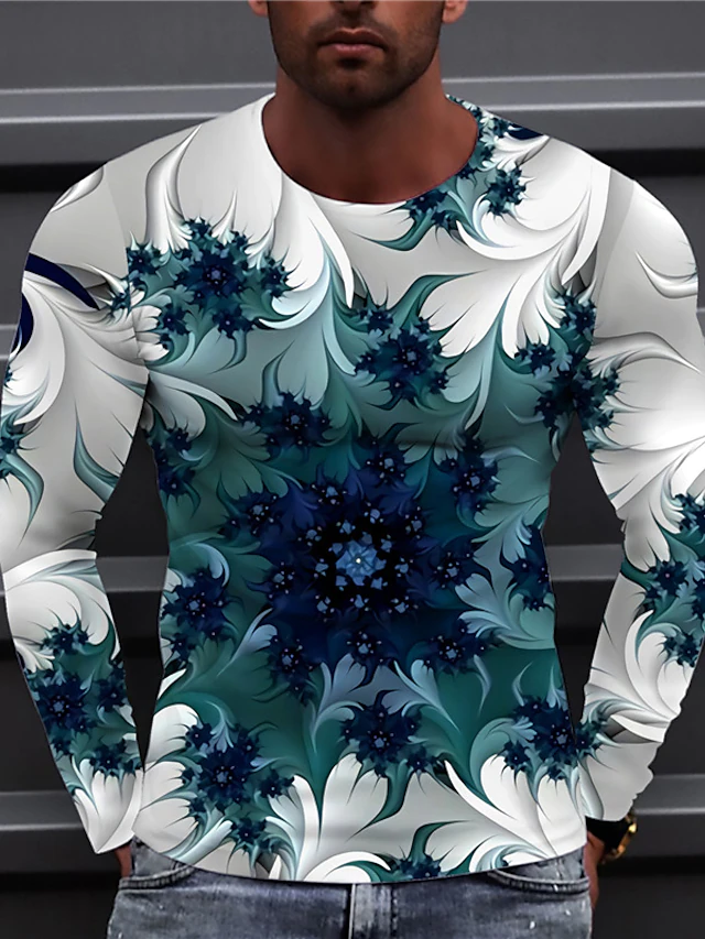 Men's T shirt Tee Optical Illusion Crew Neck Green Blue Rainbow Red 3D Print Outdoor Street Long Sleeve Print Clothing Apparel Sports Fashion Sportswear Casual / Fall