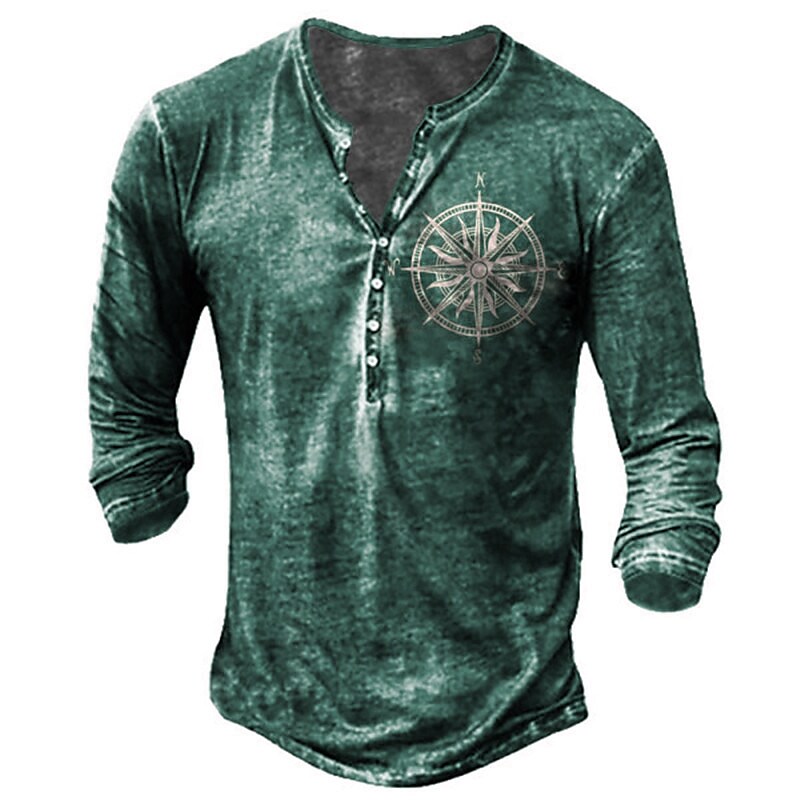Men's Outdoor Street Fashion Casual Breathable Comfortable Button Light Pattern Print Waffle Short Sleeve Henley Shirt