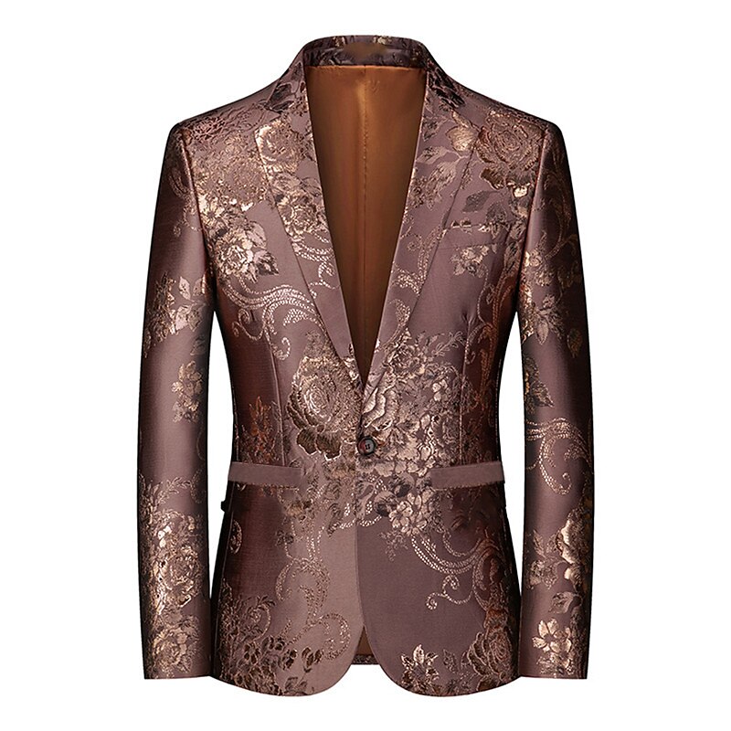 Floral Mens 3D Shirt For Formal | Brown Winter Fabric | Graphic Prints Fashion Streetwear Business Men'S Blazer Work To Going Out Fall & Turndown Long Sleeve Silver Black