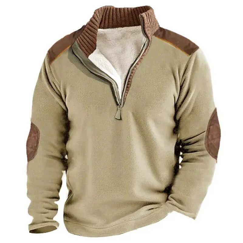 Men's Sweatshirt Quarter Zip Sweatshirt Khaki Standing Collar Color Block Patchwork Sports & Outdoor Daily Holiday Streetwear Basic Casual Fall & Winter Clothing Apparel Hoodies Sweatshirts