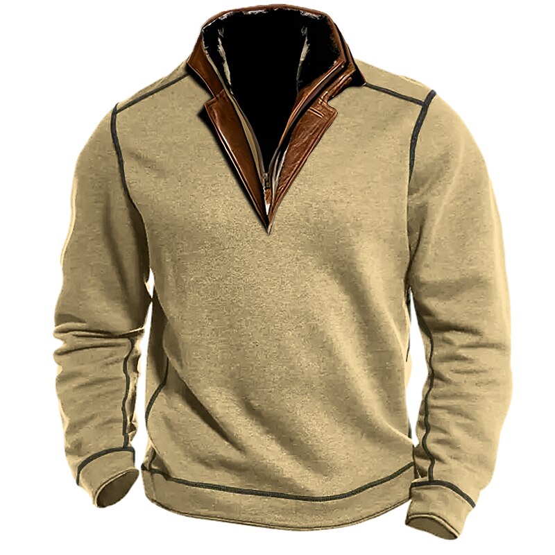 Men's Sweatshirt Black Brown Khaki Standing Collar Color Block Patchwork Sports & Outdoor Daily Holiday Streetwear Basic Casual Spring & Fall Clothing Apparel Hoodies Sweatshirts Long Sleeve