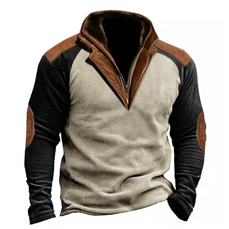 Men's Sweatshirt Quarter Zip Sweatshirt Black Blue Brown Khaki Standing Collar Color Block Patchwork Sports & Outdoor Daily Holiday Corduroy Streetwear Basic Casual Spring & Fall Clothing Apparel