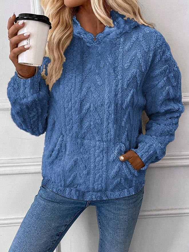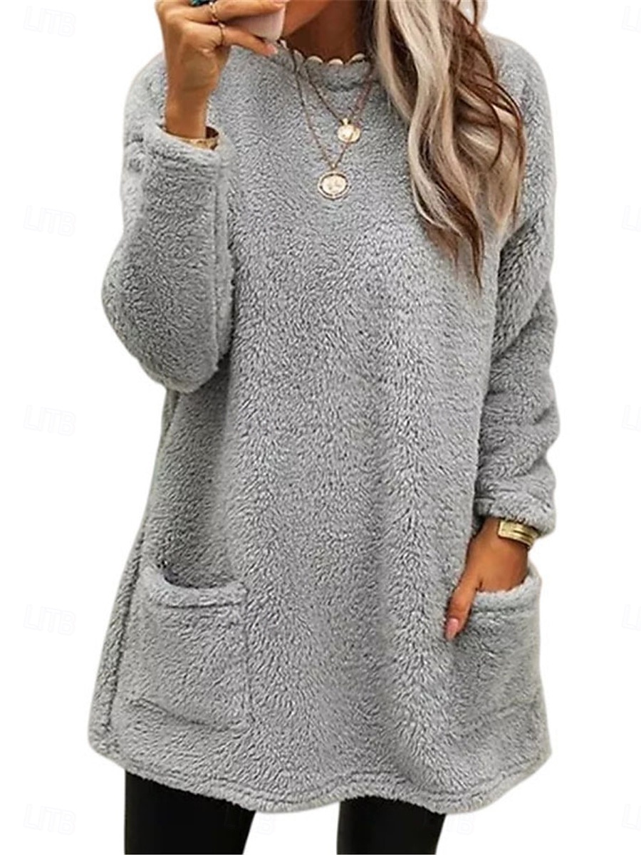 Women's Sweatshirt Casual Sherpa Polyester Plain Dailywear Crew Neck Pocket Long Sleeve Brown Green Gray Fall Winter