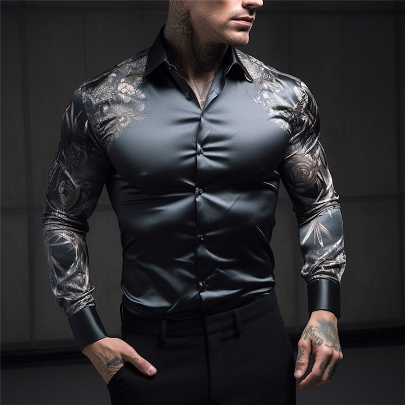 Floral Vintage Men's Shirt Outdoor Street Casual Daily Fall & Winter Turndown Long Sleeve Dark Navy Royal Blue Blue S M L Shirt