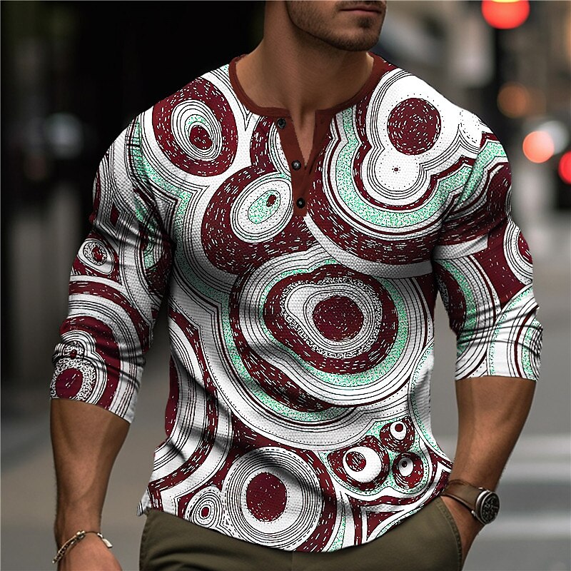 Graphic Geometic Fashion Designer Casual Men's 3D Print Henley Shirt Waffle T Shirt Sports Outdoor Holiday Festival T shirt Black Burgundy Blue Long Sleeve Henley Shirt Spring & Fall Clothing Apparel