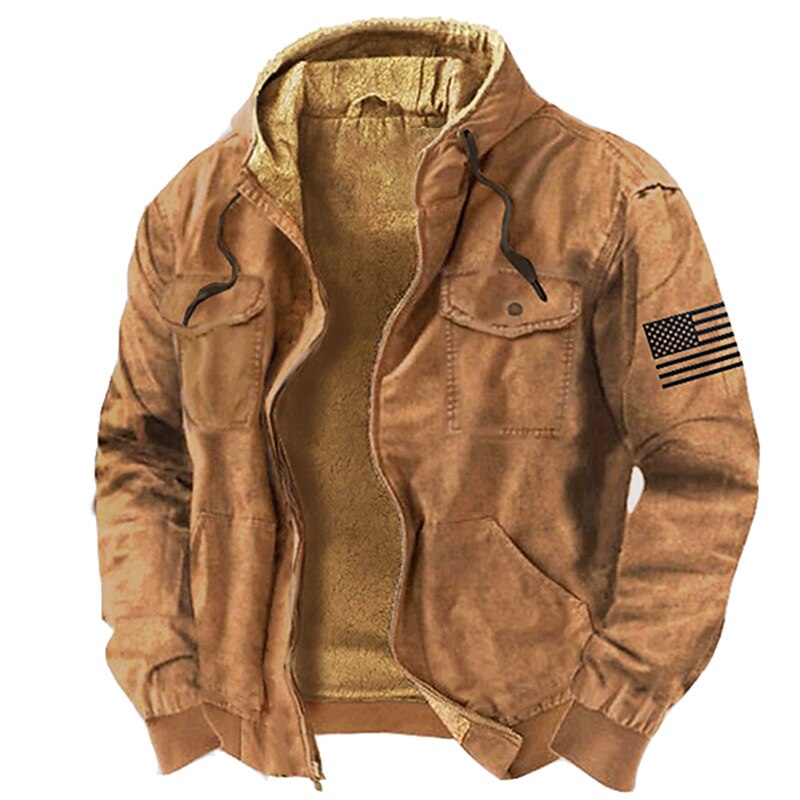 Graphic Prints National Flag Daily Casual Vintage Retro Men's 3D Print Zip Hoodie Hoodie Jacket Fleece Jacket Holiday Vacation Going out Hoodies Blue Brown Green Hooded Multi Pocket Fleece Winter