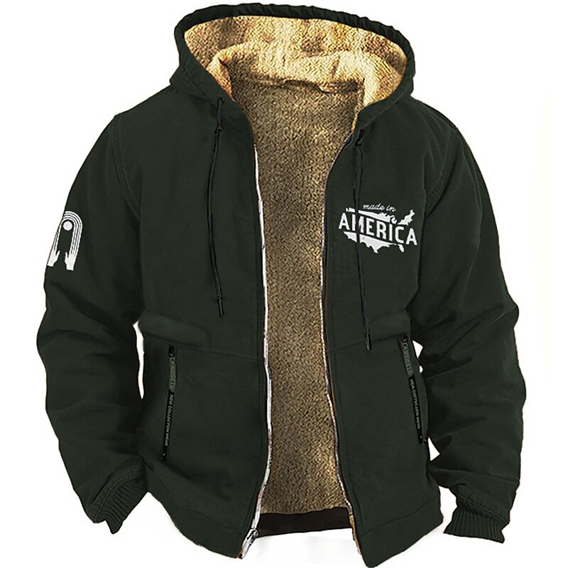 Letter Graphic Prints Fashion Daily Casual Men's Hoodie Fleece Jacket Outerwear Vacation Going out Streetwear Hoodies White Blue Dark Green Long Sleeve Hooded Print Fall & Winter Designer