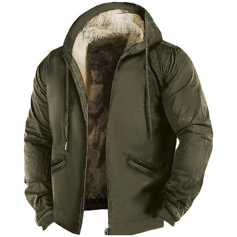 Men's Sherpa Linend Brown Green Khaki Gray Hooded Graphic Prints Zipper Pocket Sports & Outdoor Daily Sports 3D Print Fleece Streetwear Designer Casual Winter Clothing Apparel Hoodies Sweatshirts