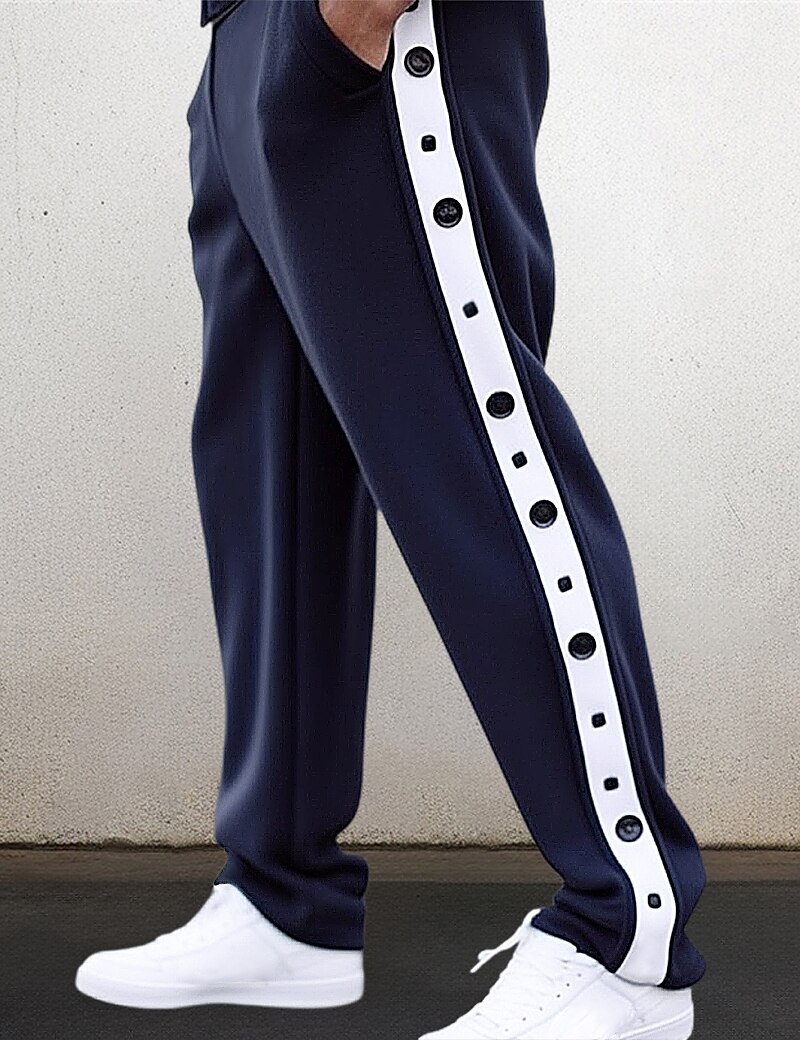 Men's Sweatpants Tear Away Pants Trousers Straight Leg Sweatpants Pocket Tear Away Side Button Plain Comfort Breathable Outdoor Daily Going out Fashion Casual Black Royal Blue