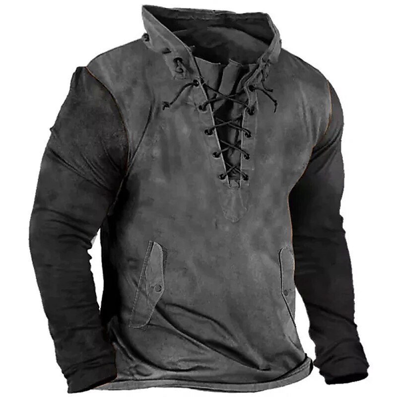 Men's Sweatshirt Pullover Green Black Blue Purple Brown Standing Collar Color Block Graphic Prints Lace up Sports & Outdoor Casual Daily 3D Print Basic Streetwear Designer Spring & Fall Clothing