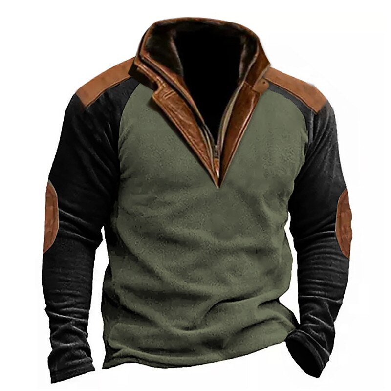 Men's Sweatshirt Quarter Zip Sweatshirt White Blue Green Khaki Standing Collar Color Block Patchwork Sports & Outdoor Daily Holiday Streetwear Basic Casual Spring & Fall Clothing Apparel Hoodies