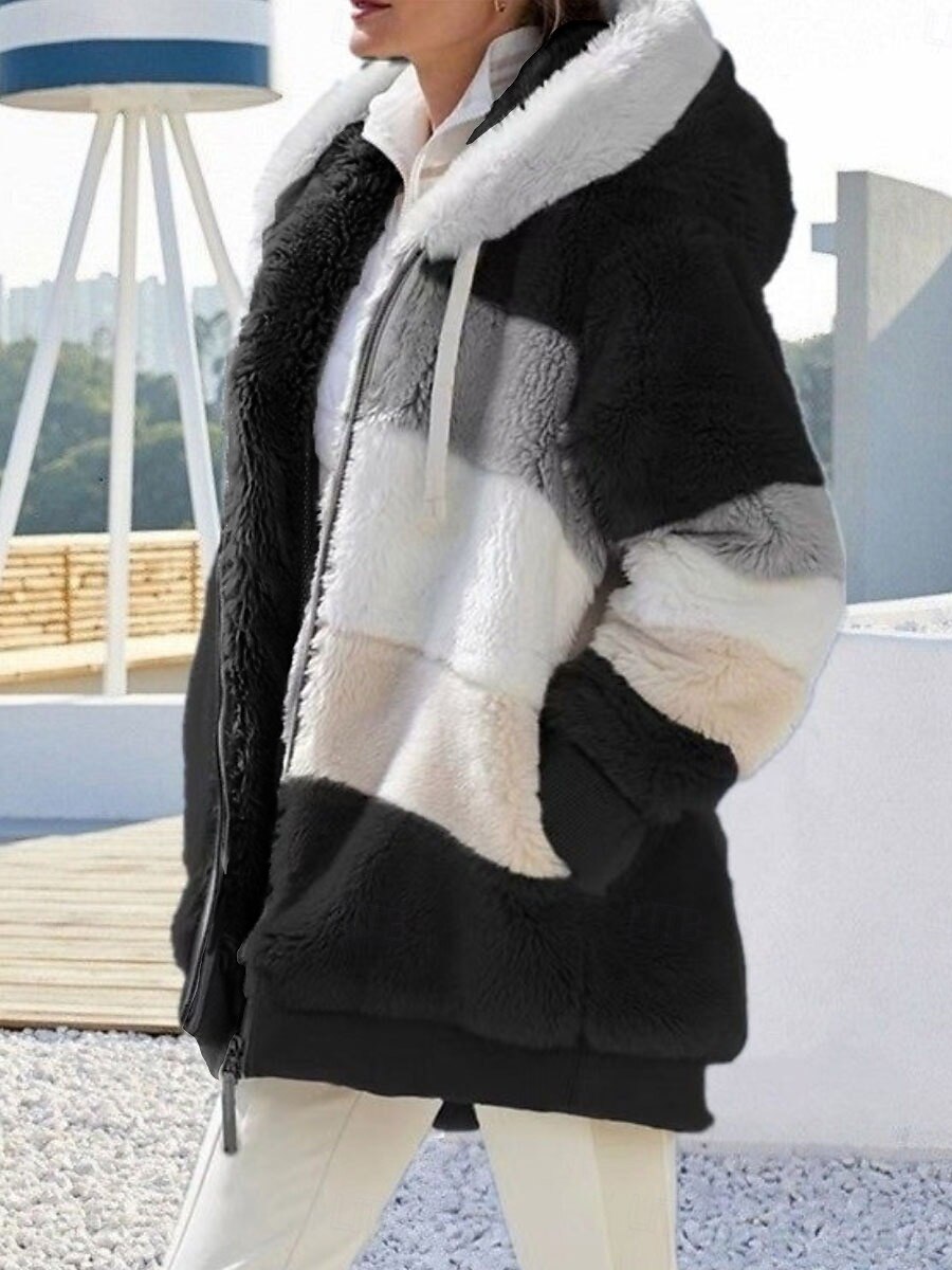 Women's Fleece Jacket Teddy Coat Hoodie Jacket Warm Breathable Street Daily Wear Vacation Going out Zipper Pocket Fleece Lined Zipper Hoodie Casual Stripe Regular Fit Outerwear Long Sleeve Fall Winter